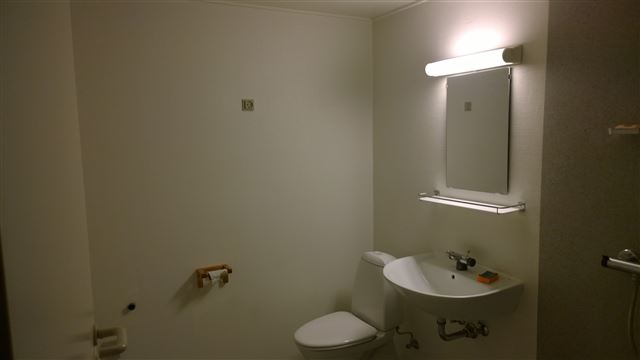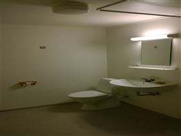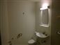 Badeværelse med bruser samt tilslutningsmulighed for egen vaskemaskine.