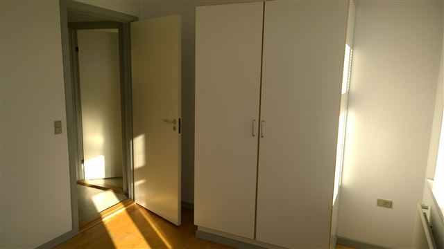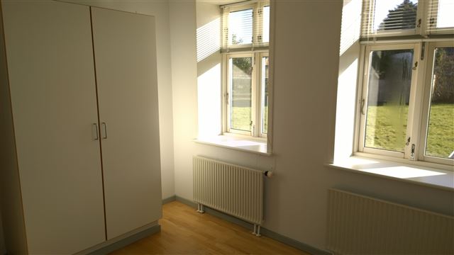 Soveværelse med indbyggede skabe.