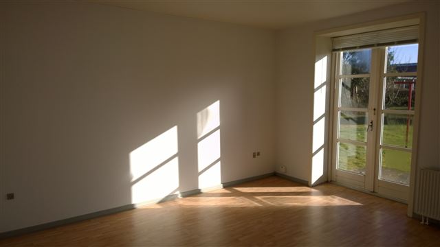 Lyst køkken samt god stue med dobbeltdør direkte til haven.